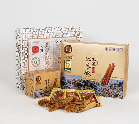 Dies ist ein hochdichtes flüssiges Produkt, das roten Ginseng enthält, der lange Zeit mit reinem Wasser eingedickt wurde.