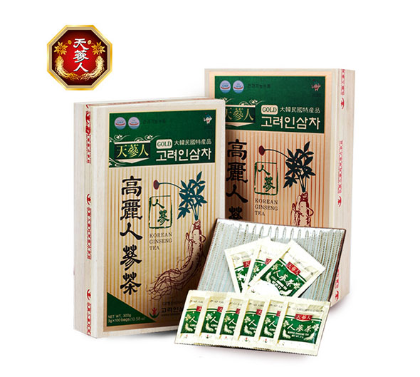 Dies ist ein körniger Tee, der Ginseng-Konzentrat enthält, das aus koreanischem Ginseng gewonnen wurde.