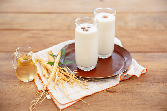 Dies ist ein nahrhaftes Getränk, das aus Ginseng, rotem Ginsengpulver oder frischem Ginseng, gemischt mit Milch in einem Mixer, hergestellt wird.