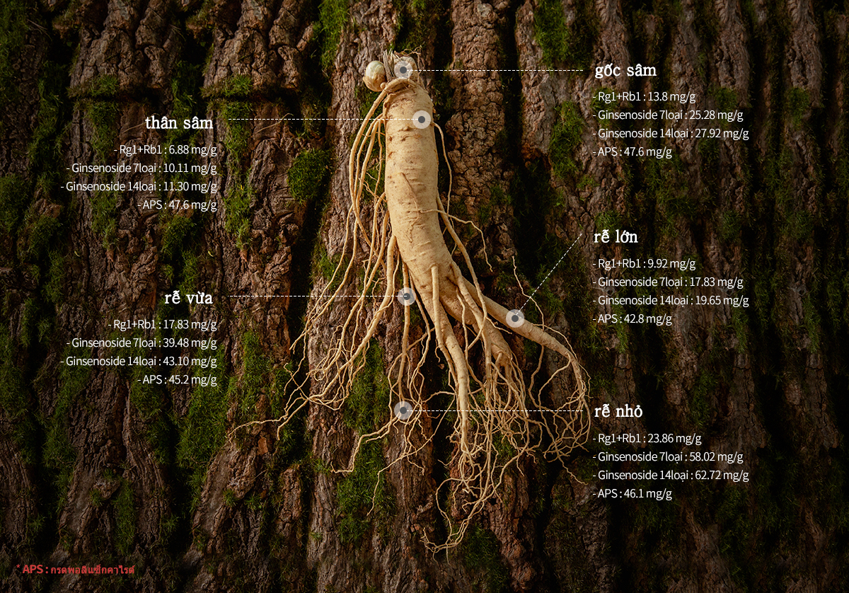 - Ginsenoside 7loại : 22.4 mg/g